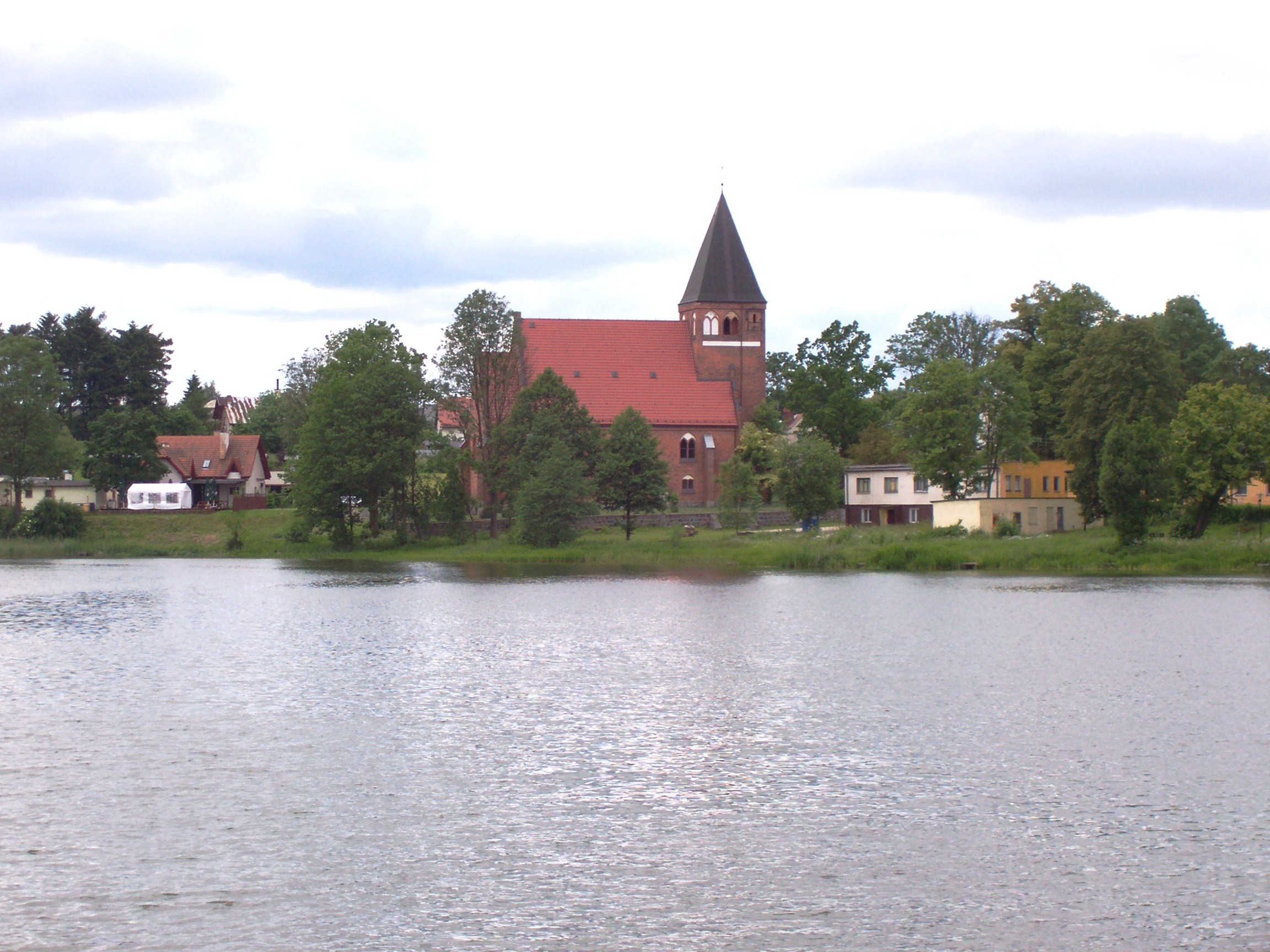 Die "neue" evangelische Kirche am See, Quelle: Pumeks, Przywidz kościół MBRóżańcowe, CC BY-SA 4.0